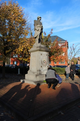 Rassemblement devant le monument aux morts     Discours     La gerbe de fleurs     Moment de recueillement     Le monument aux morts